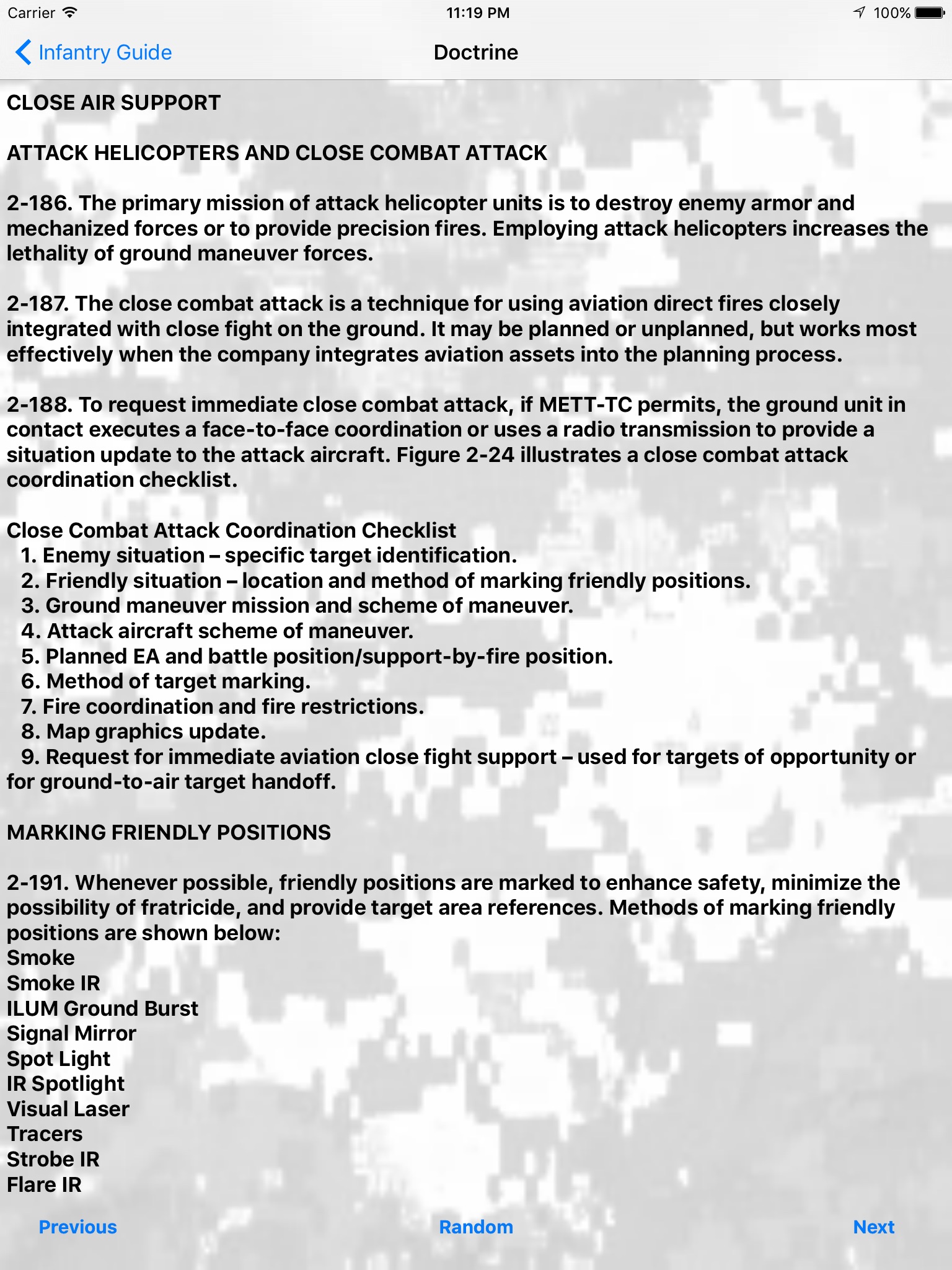 Battle Drills at Your Fingertips - Full library of 16 essential battle drills for both platoon and squad operations. Each drill includes detailed execution steps, graphics, and key points. From React to Contact to Enter/Clear a Room, your tactical playbook is always ready.
