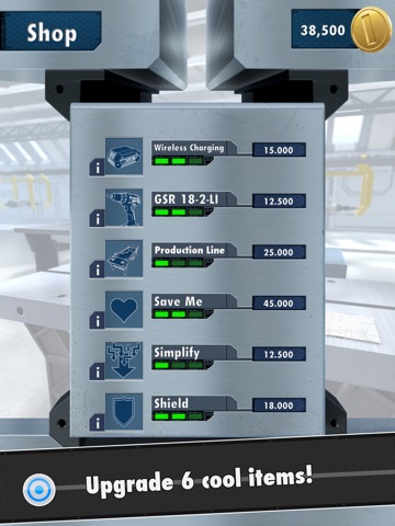 - Game Shop with numerous upgrades, which you need to play ever increasing levels of difficulty and achieve your quota
