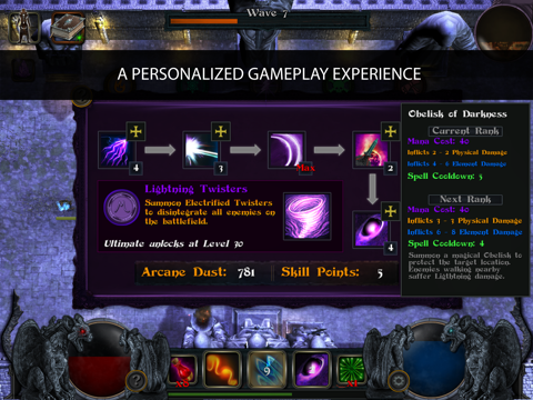 * 20 unique spells, offering very different and personalized gameplay experience.