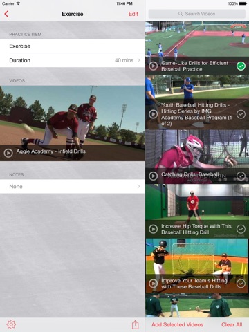 Need to find exercises? Browse hundreds of video drills and exercises on YouTube and attach them to your practice plan items for easy reference.