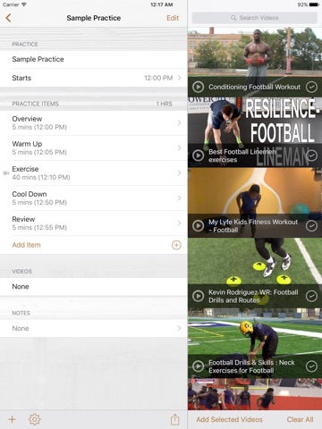 Need to find exercises? Browse hundreds of video drills and exercises on YouTube and attach them to your practice plan items for easy reference.