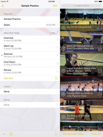 Need to find exercises? Browse hundreds of video drills and exercises on YouTube and attach them to your practice plan items for easy reference.