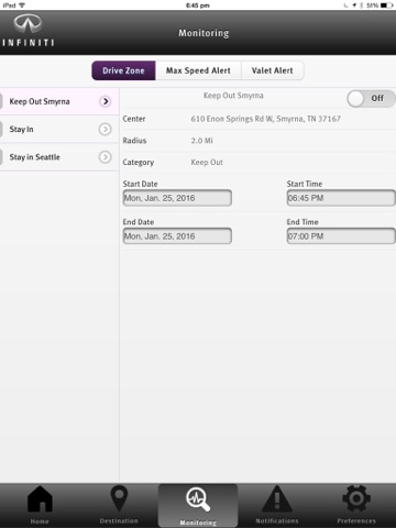 -Set up Drive Zone, Max Speed, and Valet Alerts