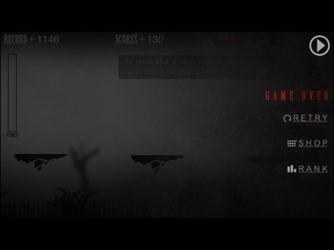 这是一个很难得跳跃游戏,玩家需要选择恰当的时机进行跳跃前进,不然就会失败。