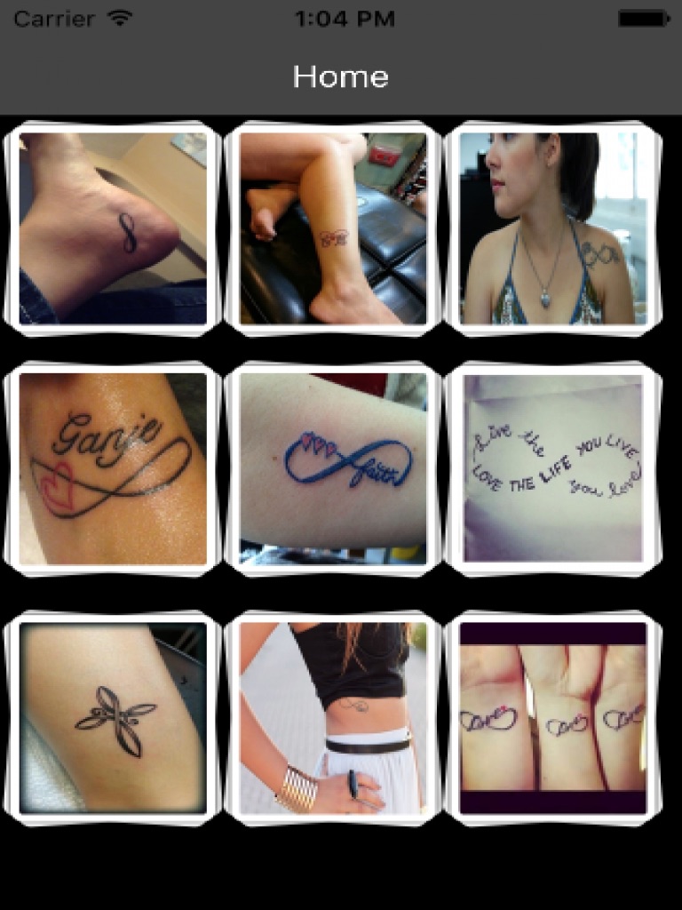 Infinity Tattoos gallery is an application for inspiration about Tattoo you would design in your body.