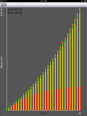 Growing inflation is eating away at your savings! This app will calculate how inflation rates will effect your savings, and Graph It!