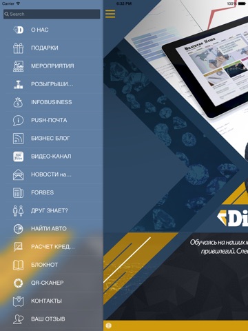 В приложении INFOBUSINESS присутствуют: