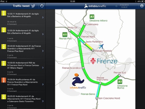 Infoblu Traffic Firenze è lapplicazione che fornisce in tempo reale le informazioni sullo stato del traffico nelle strade principali dellarea di Firenze.