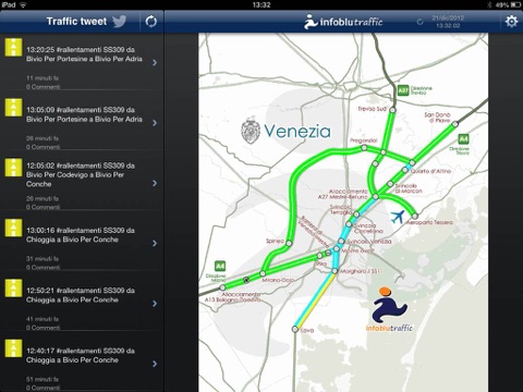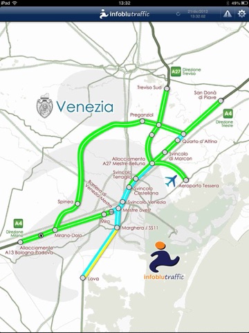 Infoblu Traffic Venezia è lapplicazione che fornisce in tempo reale le informazioni sullo stato del traffico nelle strade principali dellarea di Venezia.