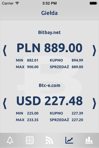 Ponadto, aplikacja pozwala sprawdzić ceny bitcoina na wielu polskich oraz zagranicznych giełdach (dostępne giełdy: bitbay.net, bitmarket.pl, bitcurex.com, bitstamp.net, btc-e.com, okcoin.com, bitfinex.com).