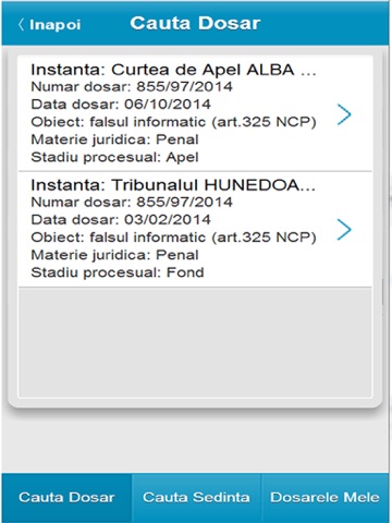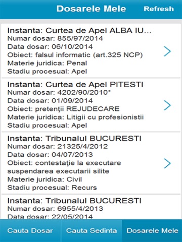 Aplicatia ofera posibilitatea de a cauta dosare, sedinte, salva si monitoriza dosare si multe altele. Instaleaza-o GRATUIT si testeaz-o.