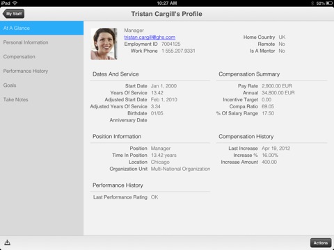· View a team member’s profile for relevant information about their work, their compensation and how they are performing