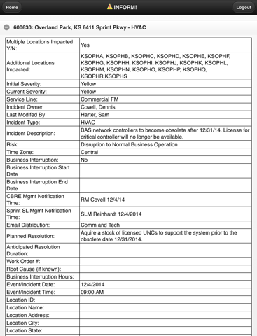 Push notification are sent to this app when an incident occurs. Swiping the notification will bring up a web page with information about the incident.