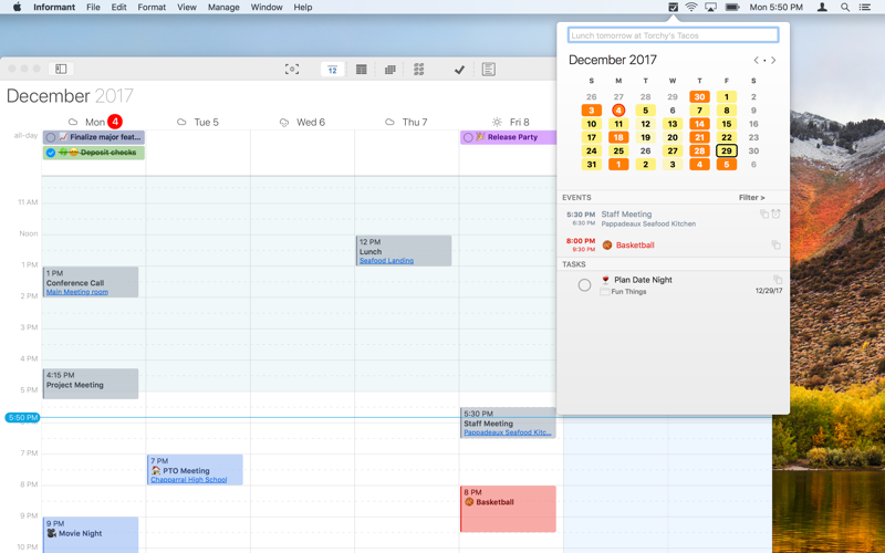 Informant is The ONE Calendar, Task, Project app you will ever need. Over 1 Million people have trusted Informant on iOS for over a decade as their go-to-organizer and now you can enjoy that same power of productivity on your Mac as well.