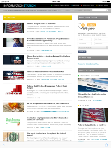 A well-informed public is the best defense against bad public policy. Information Station provides Americans with the tools, materials and guidance they need to learn more about the impact of government policies on their jobs, pay, benefits, and families. This app provides access to videos, infographics, quizzes, and updates on how government policies affect the free market. It also provides push updates on the most recent important news.