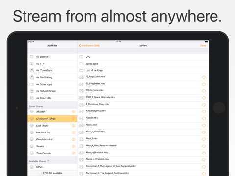 Browse and play videos stored on a Mac, PC, NAS, Wi-Fi hard drive or from UPnP/DLNA apps like Plex, Kodi (XBMC) and WMC…no syncing required.
