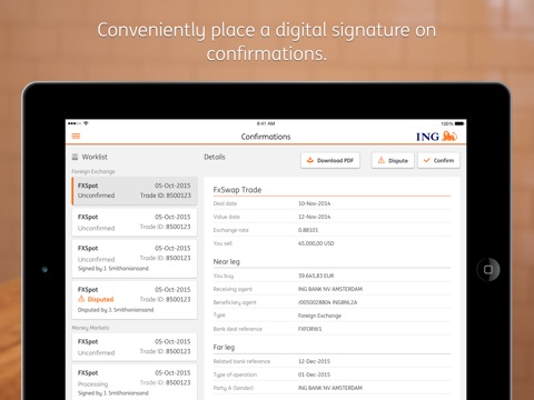 - View FX transaction confirmations with a 2 or 4 eyes set-up, confirmations overview and online handling of queries