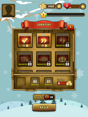 - On sorunun bulunduğu oturumlarda sorulara doğru yanıt verme oranını artırmak için oyun parasıyla Joker’ler satın alınır. Bir soru oturumunda en fazla üç farklısının kullanılabileceği Jokerler; Çift Cevap Verme, İki Seçeneği Yok Etme, Oturum Süresini Uzatma, Doğru Cevabı Görme gibi basit, eğlenceli ve faydalıdır.