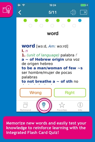 • Flash Card Quiz to memorize new words and test your knowledge as many times as you wish.