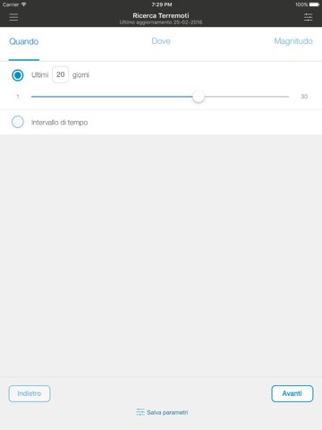 L’App permette di visualizzare anche la sismicità italiana dal 2005 in poi, tramite la sezione Ricerca Terremoti. È possibile cercare i terremoti: