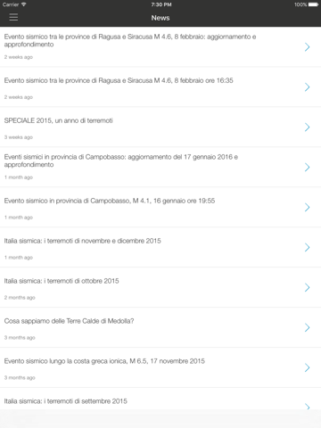 Questa è lapplicazione ufficiale dellIstituto Nazionale di Geofisica e Vulcanologia (INGV) che mostra i dati relativi ai terremoti più recenti che avvengono sul territorio italiano e, limitatamente agli eventi più forti, nel resto del mondo.