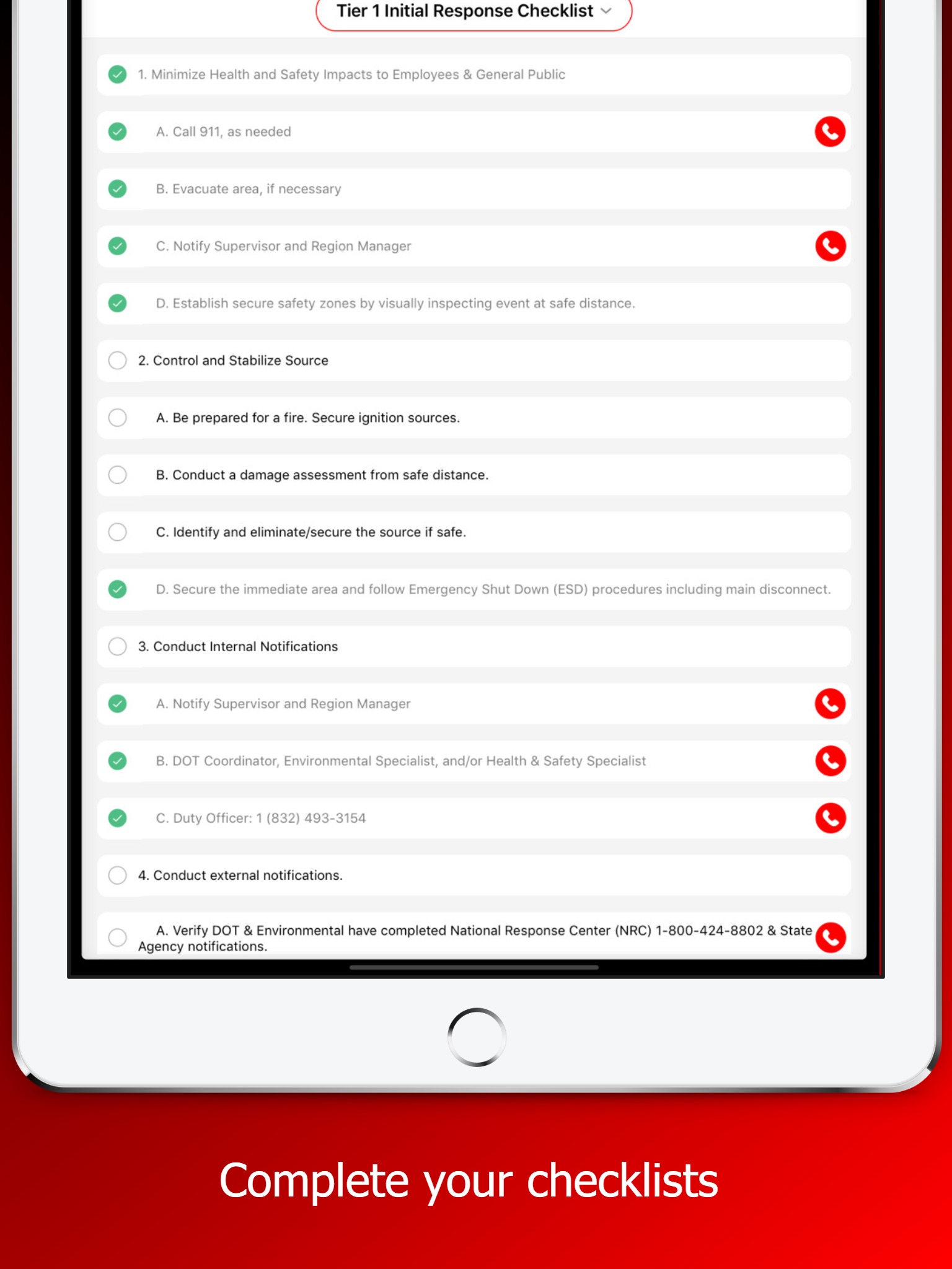 - Create customized checklists for your response actions