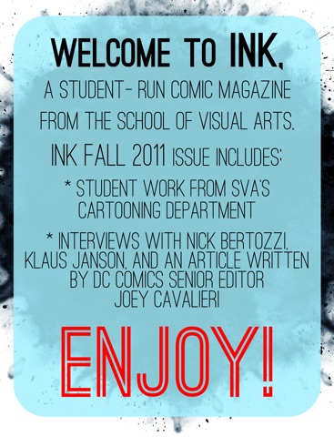INK the world’s first 100% student-run comics magazine app. INK showcases the School of Visual Arts’ diversely talented comics storytelling students, alumni, and faculty.