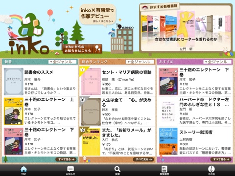 inkoは、ITベンチャーのフロントランナーとして、多数のヒットを生んできた株式会社アイ・エンターの電子書籍アプリです。アイ・エンターはこのほど、大手書店チェーン・有隣堂様と提携し、電子自費出版サービス「inko de まいレーベル」をスタートさせました。