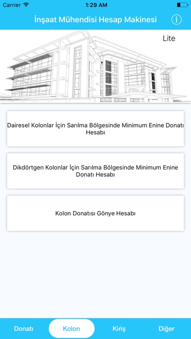 İnşaat Mühendisi Hesap Makinesi Lite (reklamlı versiyon), Türkiye’de yürürlükte olan betonarme ve deprem yönetmeliklerine uygun olarak bazı hesaplamalar yapmaktadır. İnşaat Mühendislerine bu hesaplamaları kolayca mobil cihaz ile yapma imkanı vermektedir. Basılı statik proje üzerinden donatı metrajı yapmakta kolaylık sağlamaktadır.