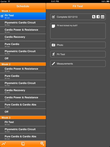 Im a big Fan of Insanity. Im doing the program for the second time and this App. Was just what I was looking for, I am though missing some functions that would make tracking easier for me. Insanity offers its own nutritional program with actually really easy to fallow recipes and calorie recommendations for every day of the week. It would be great if this was somehow trackable. It would be great if I could also track of what I eat and how many calories that ads up to each day. Most foods have nutritional information that could be manually put into the app. Putting together meal plans for example would be great. When I did the program for the first time I found it quite difficult to shop the right amount of food and ended up throwing out allot of extra food. This is a really useful function Im missing. That would be worth five starts. I really wish this can be implemented in the future. Kind regards bob