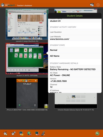 To view the details about a student such as their battery information, last used application, and last visited website, tap a thumbnail twice.