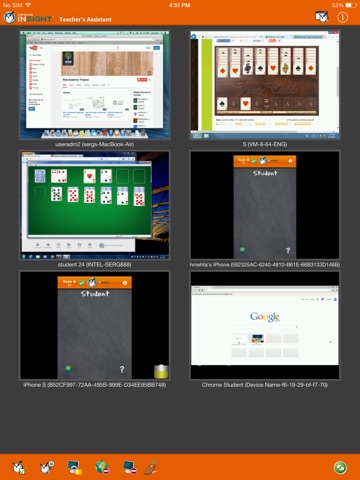 The Teacher’s Assistant will display re-sizable high color thumbnails of the student computers.