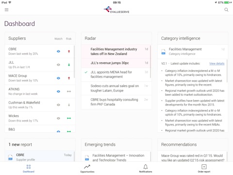 • Receive real-time notifications when alerts, opportunities or reports are published