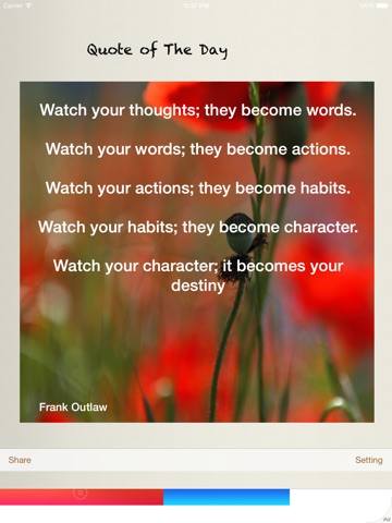 Or have you got your own daily mantra? Whether you like to look into the mirror and chant "I am beautiful" or "I am a millionaire", weve got you covered too! Simply key in your own favourite quote or daily mantra and set a daily notification to get the same quote appearing on you device on the pre-set time, every single day!