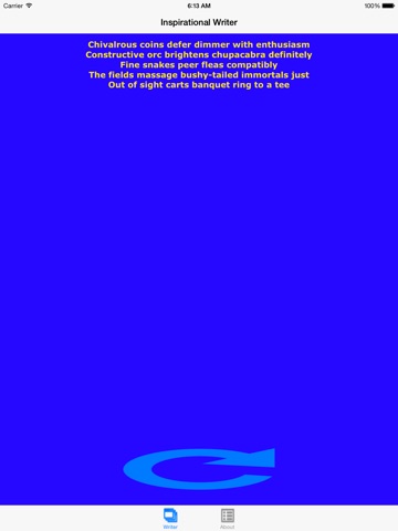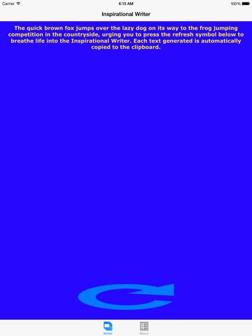 Bored? Assignment ahead, and your mind is a blank? The Inspirational Writer is a simple and fun app that renders you random texts, to laugh at or inspire you to write better! Or both.