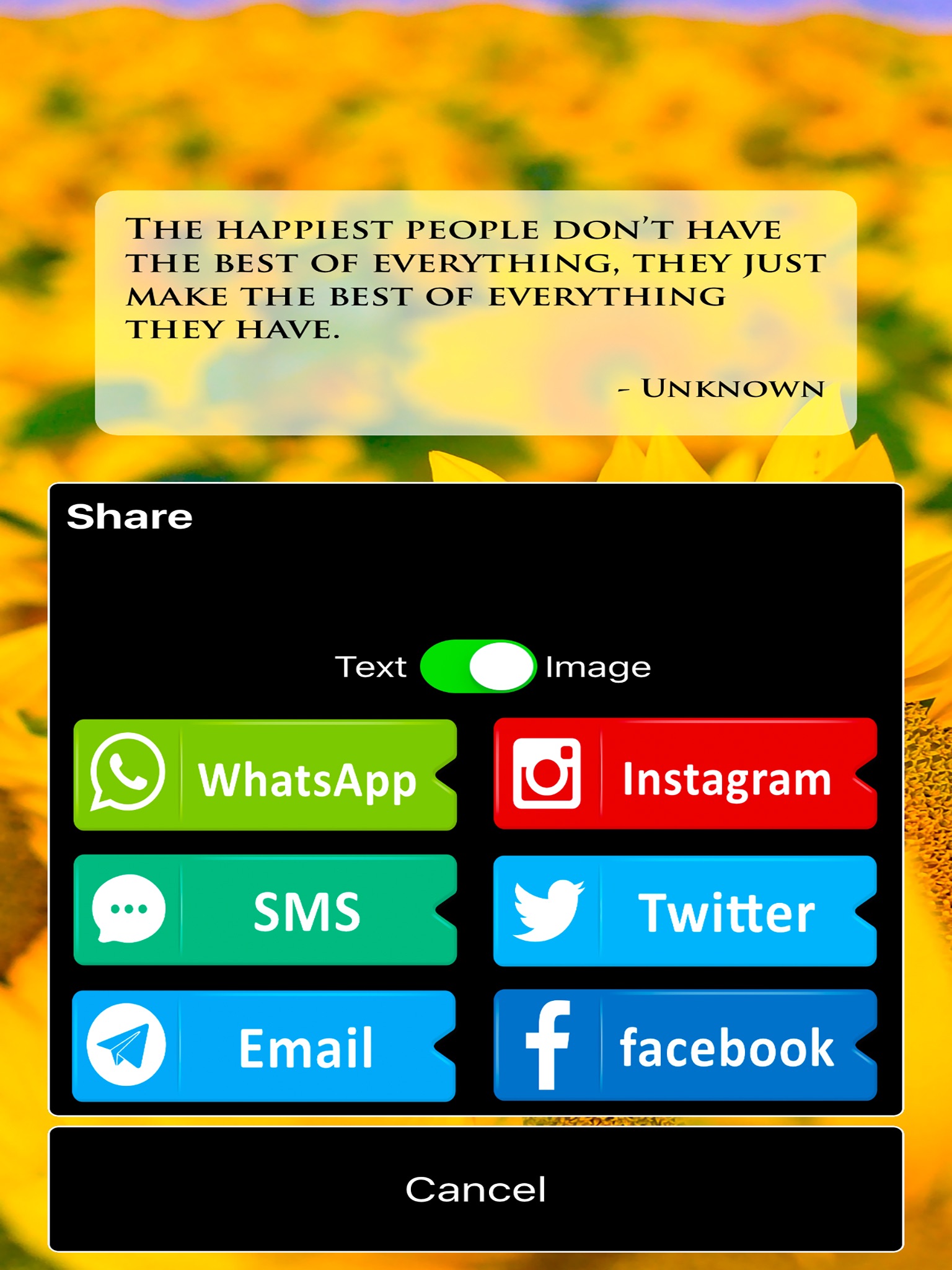 - Share a quote via Instagram, Facebook, Twitter, WhatsApp, Email and SMS.