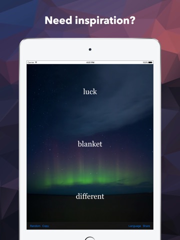 The app will randomly give you a set of words so that you can come up with any ideas from it.