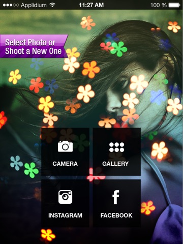 * Delicious flower bokeh effects of four different categories to enhance any pic you shoot, or use photos from your photo library, Facebook, Instagram, etc.