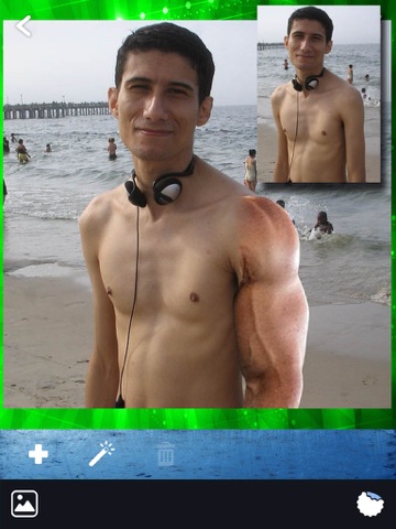 ◆ Take pics directly from your camera and add fake abs and biceps!