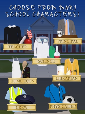 Lots of cool school items to try! Choose which school staff member you want to be or unlock all characters to mix and match.