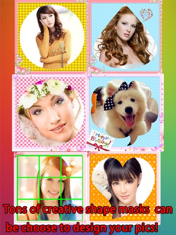 Make your photos look great! Just select one of your favorite photos and add a mask on top in a funny, cool or cute shape. Easily adjust the color, size and transparency of the mask to make it look perfect with your photo.