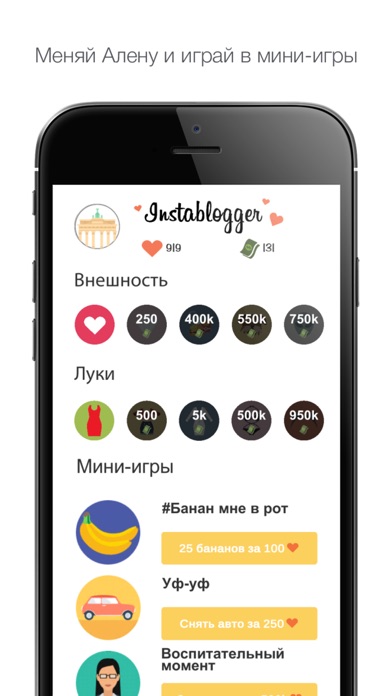 3. Когда жизнь инстаграм-знаменитости покажется невыносимо сложной- переходи на правый экран. Тут ты сможешь переодеть Алену, сменить ее комплекции и поиграть в забавные мини-игры.