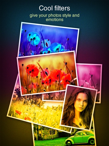 - instantly share your photos on facebook, twitter, instagram, vkontakte, flickr and tumblr. You can send a cool looking photo via email as well.