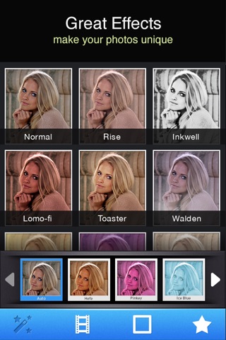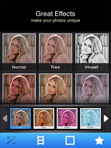 - best professional photo effects and filters based on professional works of 10 greatest photographers of the world. Now you can take a regular photo and apply more than 70 great effects to make a unique looking picture!