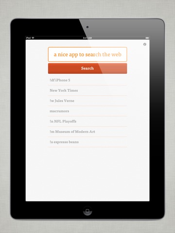 InstaDuck is made for simplicity. There are no unnecessary buttons or preferences. Everything contributes to the fastest way possible to search DuckDuckGo.