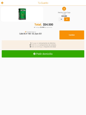 Sólo necesitas presionar un botón, escoger cuántas cajas de aguardiente quieres y la llevamos a donde necesites en menos de una hora.