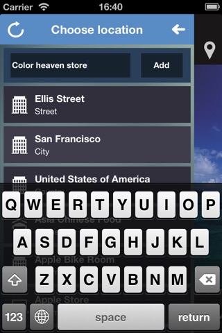 * You can easily add the street you´re at, city, country, a location nearby or add a custom made place