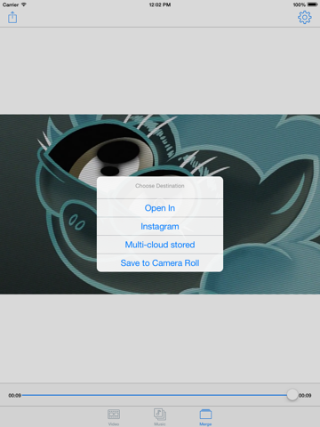 The result video will be saved to the Camera Roll. You can then open Camera Roll to start sharing.