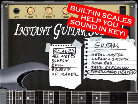 The hit guitar solo app returns bigger and better than ever! Instant Guitar Solo II gives anyone the ability to play like the greatest guitarists of all time, such as Jimi Hendrix, Eric Clapton and Jimmy Page. Its so easy to use that anyone can play along to their favorite artists, from Metallica and Slayer to Lady Gaga or Coldplay.