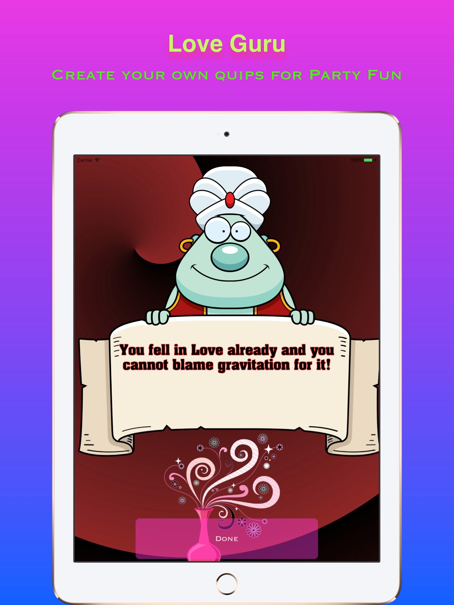 Ask the house Guru or become your own Guru of Love for party fun with friends.